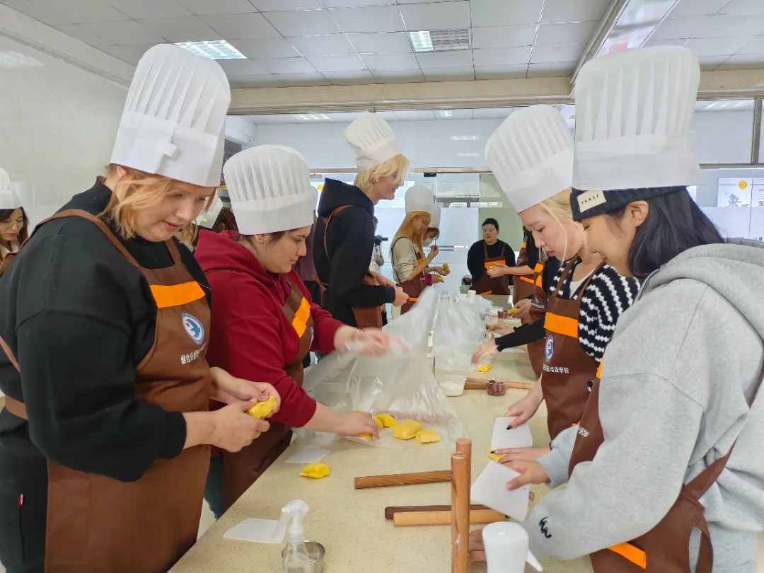 组织部分留学生前往奇山街道参加“罘邻四海”体验活动,“沉浸式”体验非遗花饽饽制作,品尝地道烟台啤酒,领略中华优秀传统文化及民族品牌的深厚底蕴。