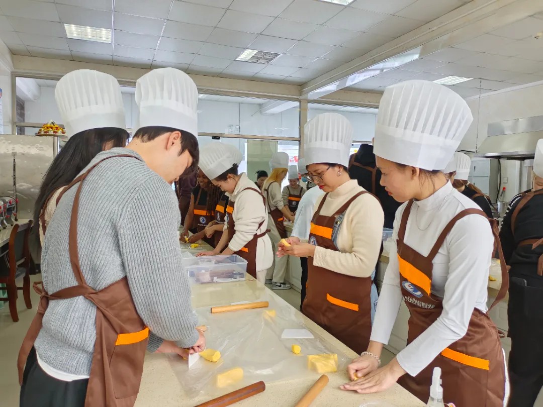 胶东面食历史悠久,其中最具代表性的花饽饽,不仅以其精巧的制作和丰富的造型著称,还承载着深厚的文化意蕴,被誉为胶东面食的瑰宝。学生们首先来到烟台兴业职业技能培训学校,在学校老师的讲解下,学生们不仅了解到了花饽饽的历史渊源、经典造型以及制作工艺,还亲自动手制作了花饽饽。