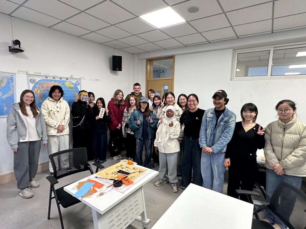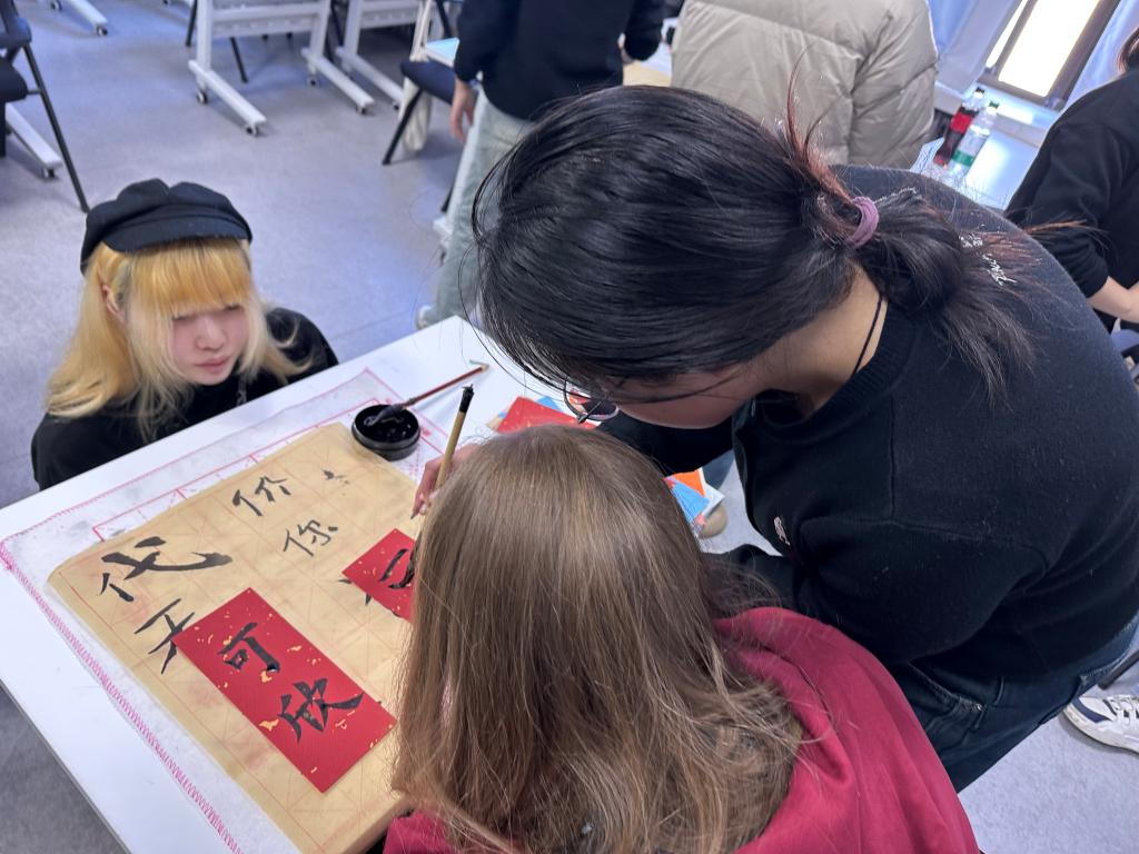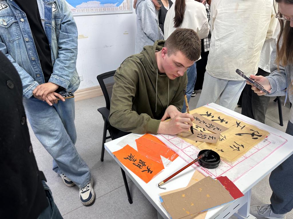 活动伊始,大家通过自我介绍相互熟悉,现场气氛迅速活跃。来自巴基斯坦的彭友同学用汉语说道:“我叫彭友,我很喜欢中国,也很喜欢汉语,希望今天能和大家一起学习、交流,共同进步。”随后,大家围绕共同爱好展开交流,书法体验环节尤为受欢迎。