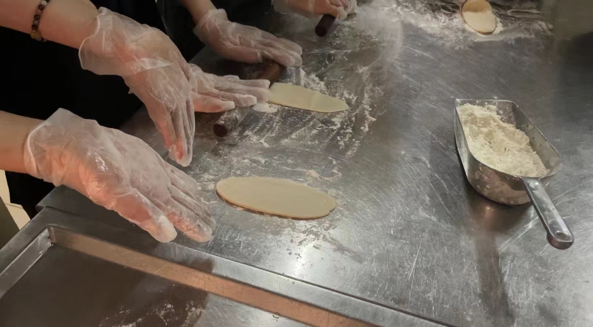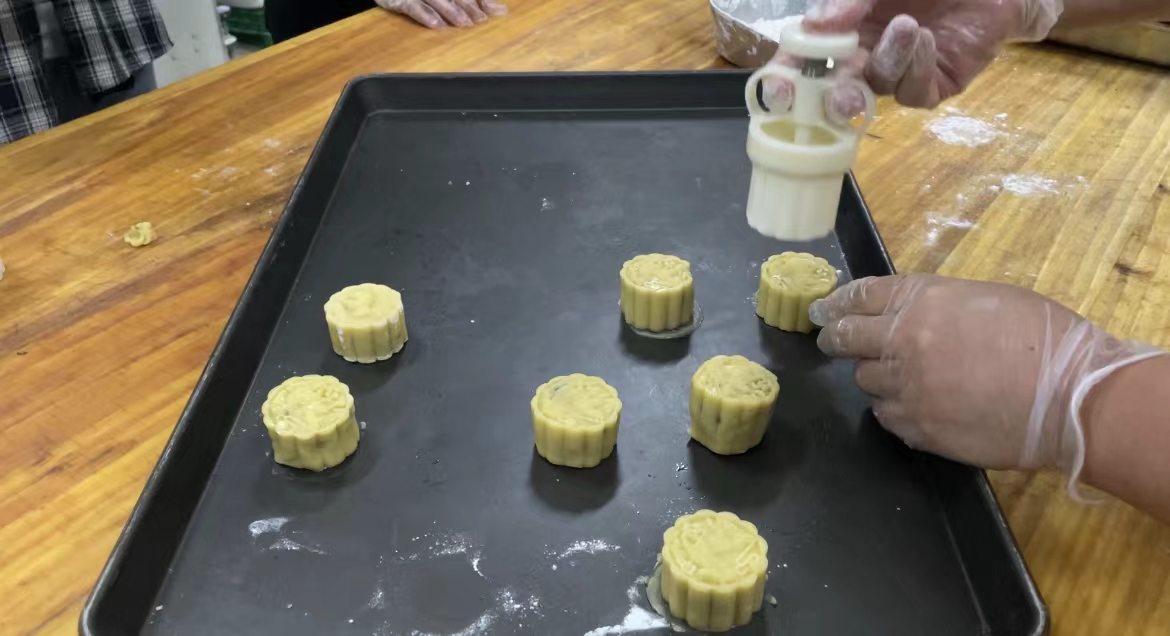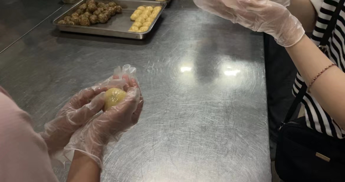 按扁面团、分割擀皮、包入馅料……活动现场,在面点师傅手把手地指导下,留学生们按照步骤,分别体验了广式月饼和苏式月饼的不同制作方法。“自己动手做月饼太有趣了。”来自俄罗斯的雷特姆说,“看面点师傅制作月饼很简单,但是自己上手做起来需要很多技巧。经过反复练习,终于制作出来自己满意的月饼,感觉很开心。”