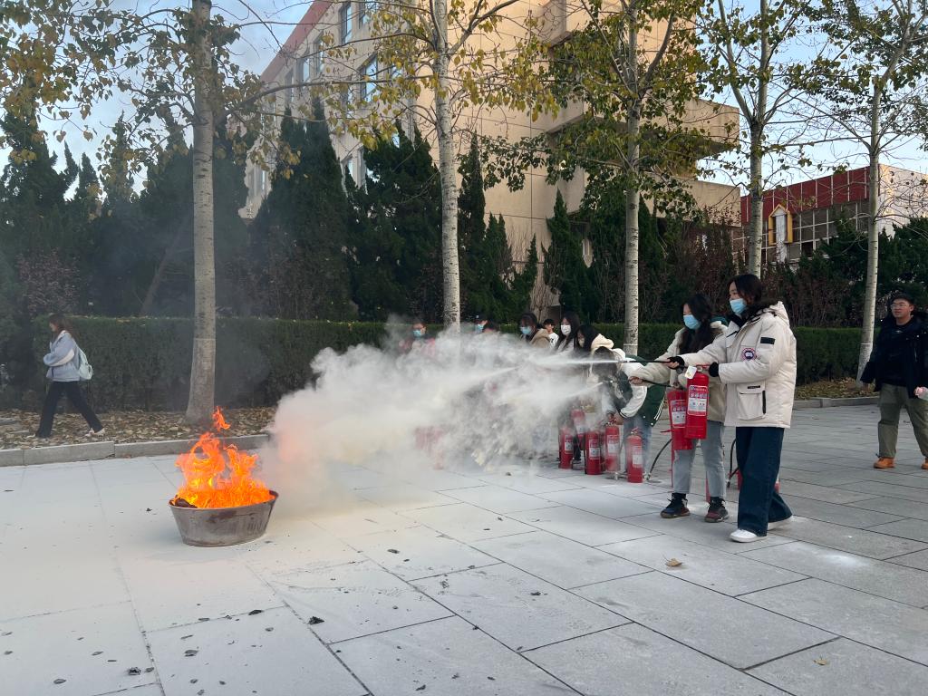 随后,工作人员进行了模拟火灾现场,并指导学生运用灭火器进行灭火实操,让学生们切实操作感受。
