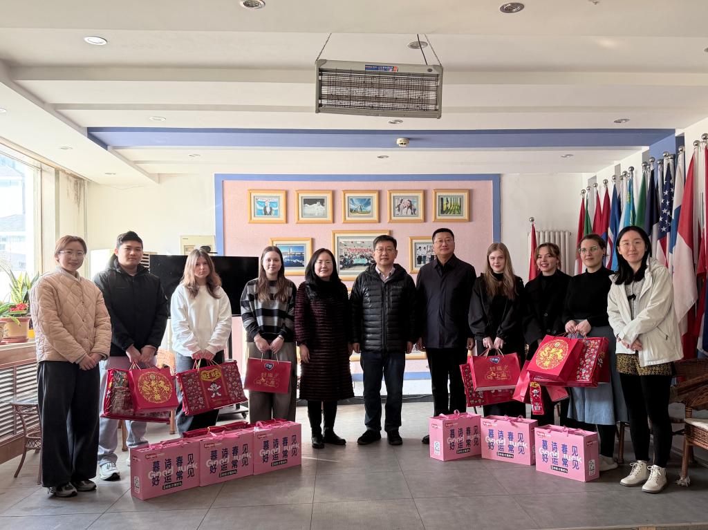 副校长王洪波,国际交流学院党总支书记秦月红、院长曲世金一行来到学校外事服务中心,看望寒假期间留校的各国留学生,为远离家乡的学子们送上新春的祝福与节日的关怀。