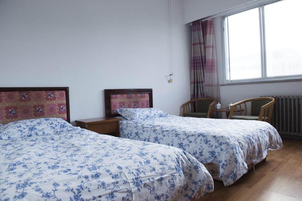 外事服务中心楼(留学生宿舍)是一栋六层大楼,占地面积4000平方米,设有单人间,双人间,四人间。六层为外教住宿区,二至五层为留学生住宿区,一层为办公区和接待区。全楼有5间公用洗衣间,配有全自动洗衣机,免费供学生使用。大厅设有休闲吧、学习吧。外事服务中心楼北面紧邻留学生餐厅,餐厅总建筑面积约800平方米,分有中餐和西餐,能同时容纳400人就餐。餐厅设备设施先进。一卡通、空调、网络、闭路电视等全部覆盖。
